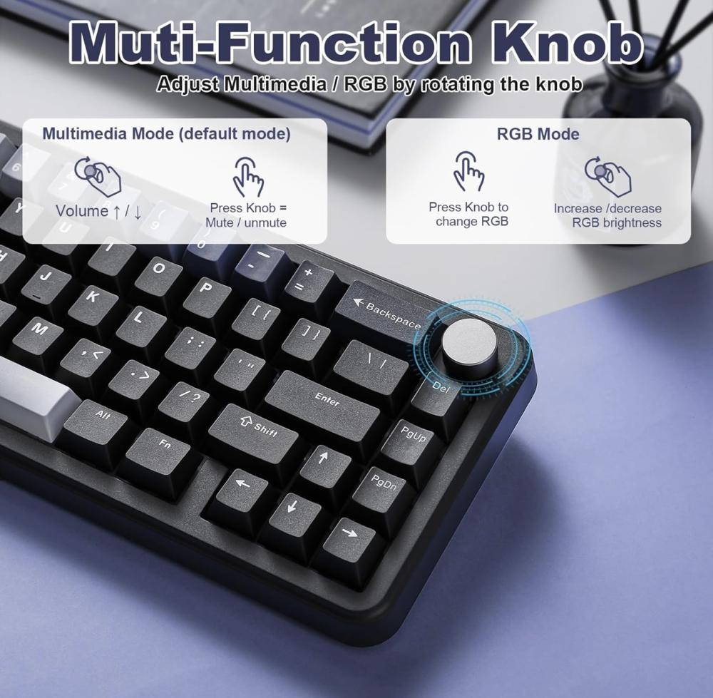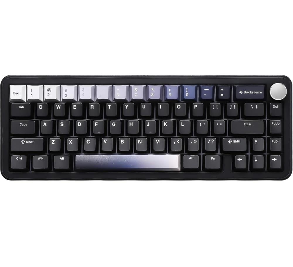 - تصميم مدمج بنسبة 65% مع مقبض متعدد الوظائف: تتميز لوحة المفاتيح الميكانيكية يونزيل B68 بتصميم مضغوط بنسبة 65% مع مقبض متعدد الوظائف، مما يزيد من مساحة مكتبك الجمالية مع الاحتفاظ بجميع المفاتيح الأساسية. مع ضغطة طويلة بسيطة، قم بالتبديل بسهولة بين أوضاع الوسائط المتعددة والفضاء اللوني ار جي بي لتناسب احتياجات عملك أو الألعاب. يسمح لك المقبض أيضًا بضبط مستوى الصوت والإضاءة الخلفية بالفضاء اللوني ار جي بي بسهولة، مما يجعل لوحة المفاتيح اللطيفة هذه مزيجًا مثاليًا من العملية والأناقة لكل من إعدادات المكتب والاستخدام أثناء التنقل.
